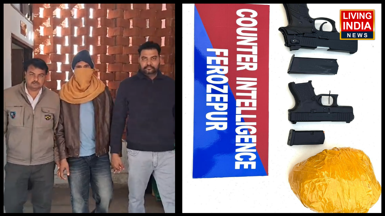 ਫ਼ਿਰੋਜ਼ਪੁਰ: ਪੰਜਾਬ ਵਿੱਚ ਨਸ਼ਾ ਤਸਕਰਾਂ ਅਤੇ ਦੇਸ਼ ਵਿਰੋਧੀ ਅਨਸਰਾਂ ਖ਼ਿਲਾਫ਼ ਵਿੱਢੀ ਮੁਹਿੰਮ ਤਹਿਤ ਫ਼ਿਰੋਜ਼ਪੁਰ ਕਾਊਂਟਰ ਇੰਟੈਲੀਜੈਂਸ ਦੀ ਟੀਮ ਨੂੰ ਇੱਕ ਵੱਡੀ ਸਫ਼ਲਤਾ ਮਿਲੀ ਹੈ। ਪੁਲਿਸ ਨੇ ਇੱਕ ਗੁਪਤ ਸੂਚਨਾ ਦੇ ਆਧਾਰ ‘ਤੇ ਕਾਰਵਾਈ ਕਰਦਿਆਂ ਇੱਕ ਅੰਤਰਰਾਸ਼ਟਰੀ ਤਸਕਰ ਨੂੰ ਗ੍ਰਿਫ਼ਤਾਰ ਕੀਤਾ ਹੈ, ਜਿਸ ਦੇ ਕਬਜ਼ੇ ਵਿੱਚੋਂ ਪਾਕਿਸਤਾਨ ਤੋਂ ਮੰਗਵਾਈ ਗਈ ਕਰੋੜਾਂ ਰੁਪਏ ਦੀ ਹੈਰੋਇਨ ਅਤੇ ਆਧੁਨਿਕ ਹਥਿਆਰ ਬਰਾਮਦ ਕੀਤੇ ਗਏ ਹਨ।