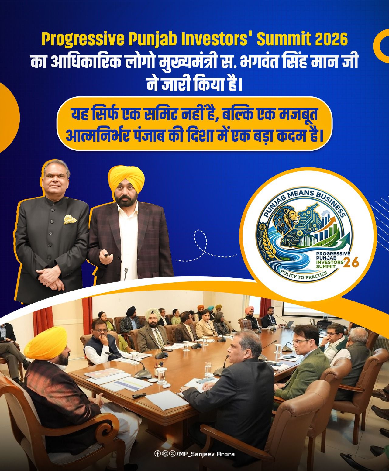 ਪ੍ਰਗਤੀਸ਼ੀਲ ਪੰਜਾਬ ਨਿਵੇਸ਼ਕ ਸੰਮੇਲਨ (ਪੀਪੀਆਈਐਸ) 2026 ਤੋਂ ਮਹਿਜ਼ 28 ਦਿਨ ਪਹਿਲਾਂ ਮੁੱਖ ਮੰਤਰੀ ਸ. ਭਗਵੰਤ ਮਾਨ ਵੱਲੋਂ ਚੰਡੀਗੜ੍ਹ ਵਿਖੇ ਹੋਈ ਇੱਕ ਉੱਚ-ਪੱਧਰੀ ਮੀਟਿੰਗ ਵਿੱਚ ਸੰਮੇਲਨ ਦਾ ਅਧਿਕਾਰਤ ਲੋਗੋ ਜਾਰੀ ਕੀਤਾ ਗਿਆ ਹੈ। ਮੀਟਿੰਗ ਵਿੱਚ ਉਦਯੋਗ ਅਤੇ ਵਣਜ ਮੰਤਰੀ ਸ਼੍ਰੀ ਸੰਜੀਵ ਅਰੋੜਾ, ਪੰਜਾਬ ਦੇ ਮੁੱਖ ਮੁੱਖ ਸਕੱਤਰ, ਸੀਨੀਅਰ ਸਰਕਾਰੀ ਅਧਿਕਾਰੀ ਅਤੇ ਇਨਵੈਸਟ ਪੰਜਾਬ ਦੇ ਨੁਮਾਇੰਦੇ ਸ਼ਾਮਲ ਸਨ। ਸੰਮੇਲਨ ਦੀਆਂ ਤਿਆਰੀਆਂ ਨਾਲ ਜੁੜੇ ਸਾਰੇ ਮੁੱਖ ਵਿਭਾਗ ਵੀ ਸਮੀਖਿਆ ਮੀਟਿੰਗ ਦੌਰਾਨ ਮੌਜੂਦ ਸਨ।