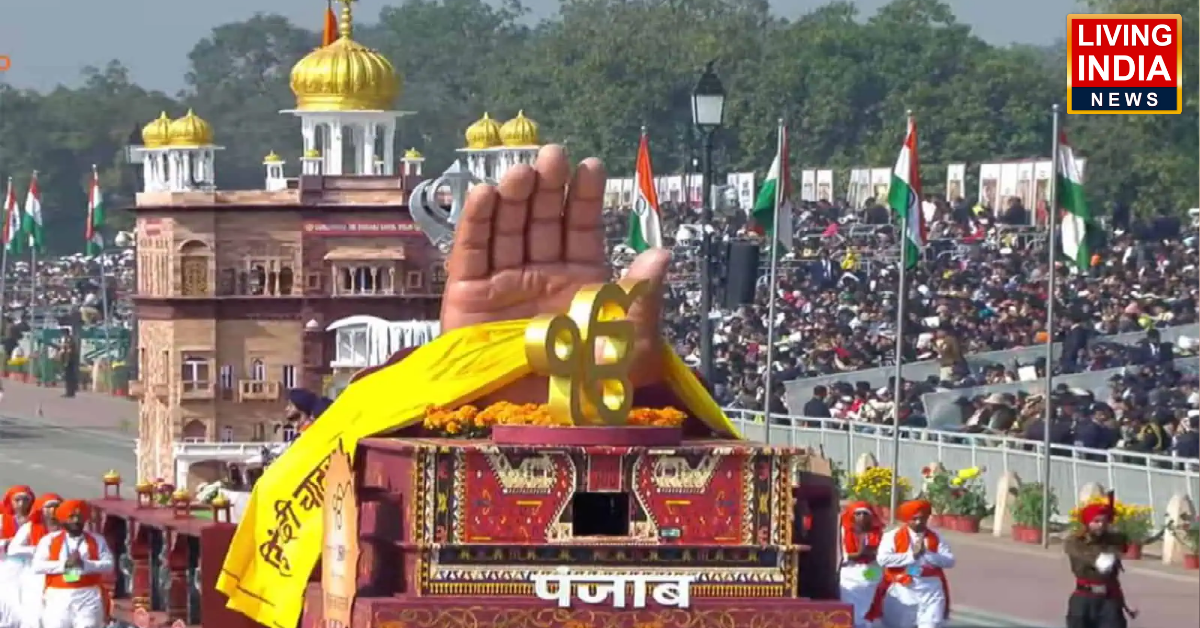 ਨਵੀਂ ਦਿੱਲੀ: ਦੇਸ਼ ਦੇ 77ਵੇਂ ਗਣਤੰਤਰ ਦਿਵਸ ਦੇ ਮੌਕੇ ‘ਤੇ ਅੱਜ ਦਿੱਲੀ ਦੇ ਕਰਤੱਵ ਪਥ ‘ਤੇ ਪੰਜਾਬ ਦੀ ਝਾਕੀ ਨੇ ਆਪਣੀ ਅਧਿਆਤਮਿਕ ਅਤੇ ਇਤਿਹਾਸਕ ਦਿੱਖ ਨਾਲ ਸਭ ਦਾ ਮਨ ਮੋਹ ਲਿਆ। ਇਸ ਵਾਰ ਪੰਜਾਬ ਦੀ ਝਾਕੀ ਨੌਵੇਂ ਪਾਤਸ਼ਾਹ ਸ੍ਰੀ ਗੁਰੂ ਤੇਗ ਬਹਾਦਰ ਸਾਹਿਬ ਜੀ ਦੀ ਸ਼ਹਾਦਤ ਦੇ 350ਵੇਂ ਸਾਲ ਨੂੰ ਸਮਰਪਿਤ ਕੀਤੀ ਗਈ ਸੀ। ਮਨੁੱਖੀ ਅਧਿਕਾਰਾਂ, ਧਾਰਮਿਕ ਆਜ਼ਾਦੀ ਅਤੇ ਇਨਸਾਫ਼ ਦੀ ਰਾਖੀ ਲਈ ਆਪਣੀ ਕੁਰਬਾਨੀ ਦੇਣ ਵਾਲੇ ‘ਹਿੰਦ ਦੀ ਚਾਦਰ’ ਗੁਰੂ ਸਾਹਿਬ ਜੀ ਦੇ ਜੀਵਨ ਫਲਸਫੇ ਨੂੰ ਇਸ ਝਾਕੀ ਰਾਹੀਂ ਬਹੁਤ ਹੀ ਖ਼ੂਬਸੂਰਤ ਢੰਗ ਨਾਲ ਪੇਸ਼ ਕੀਤਾ ਗਿਆ।