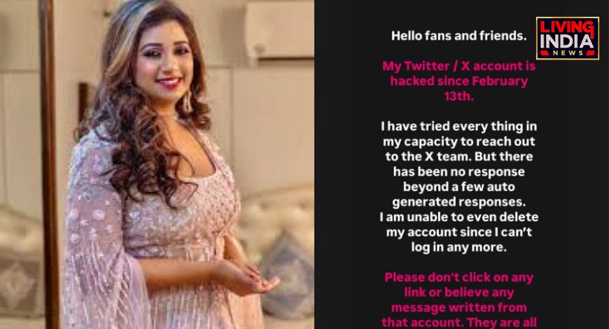 श्रेया घोषाल ने लिखा, “नमस्ते प्रशंसकों और दोस्तों. मेरा एक्स अकाउंट 13 फरवरी से हैक हो गया है। मैंने एक्स की टीम से बात करने की पूरी कोशिश की, लेकिन कोई जवाब नहीं मिला। केवल स्वतः-जनित प्रत्युत्तर ही प्राप्त किये जा रहे हैं. मैं अपना खाता भी नहीं हटा सकता, क्योंकि मैं लॉग इन नहीं कर सकता.