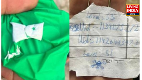 जानकारी मिली है कि घटना मंगलवार देर शाम कि है. इसके बाद घटना की जानकारी सदर थाने तरनतारन की पुलिस को लोगों द्वारा दी गईं. कागज के टुकड़े में अंग्रेजी में 2 यू.आई.डी. नंबर और 2 लेवल साफ-साफ लिखे दिख रहे हैं. इस कागज के टुकड़े पर उर्दू भाषा भी छपी हुई दिख रही है.पाकिस्तान हर दिन ड्रग्स की खेप, हथियारों की खेप भेजने की घटिया हरकतें करता रहता है.