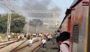 लुधियाना से दिल्ली जा रही ट्रेन गरीब रथ में अचानक आग लगने से अफरा-तफरी मच गई. यात्रियों ने पुलिस को बताया कि सुबह करीब 7 बजे की घटना है. सरहिंद रेलवे स्टेशन क्रॉस करते ही बोगी नंबर-19 से धुंआ निकलने लगा. यात्रियों ने ट्रेन की चेन खींची और नीचे उतरने लगे. पायलट उतरकर आया और उन्होंने बोगियों को खाली कराया. इस बीच धुएं के साथ आग की लपटें उठने लगीं तो यह देखकर लोगों में अफरा-तफरी मच गई और वे अपने बच्चों के साथ सामान लेकर नीचे उतर गए. हंगामा होते देखकर आस-पास के लोग भी मौके पर आ गए, जिन्होंने राहत कार्य किया और यात्रियों को संभाला.