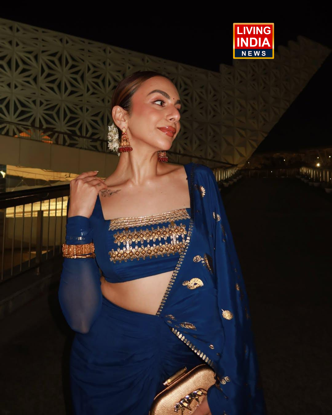 Nitibha Kaul look elegance in blue saree